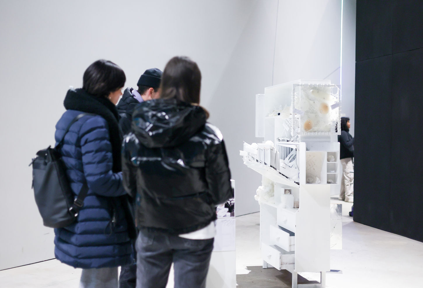 Through a 'tactile cabinet of curiosities', participants are invited to explore a bizarre field where the virtual and the physical are deeply integrated. Inspired by Laban Movement Analysis (LMA), a series of hand movement detection modules, each with different material and sensory-kinetic properties, have been designed to capture and translate real-time touch data in order to achieve precise visual-tactile mapping.